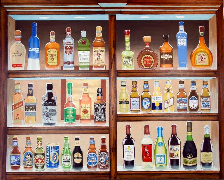 Each bottle or can is a mini life-sized painting within the painting, and was selected for its subject, color and balance. The entire process took a total of 10 months to complete.